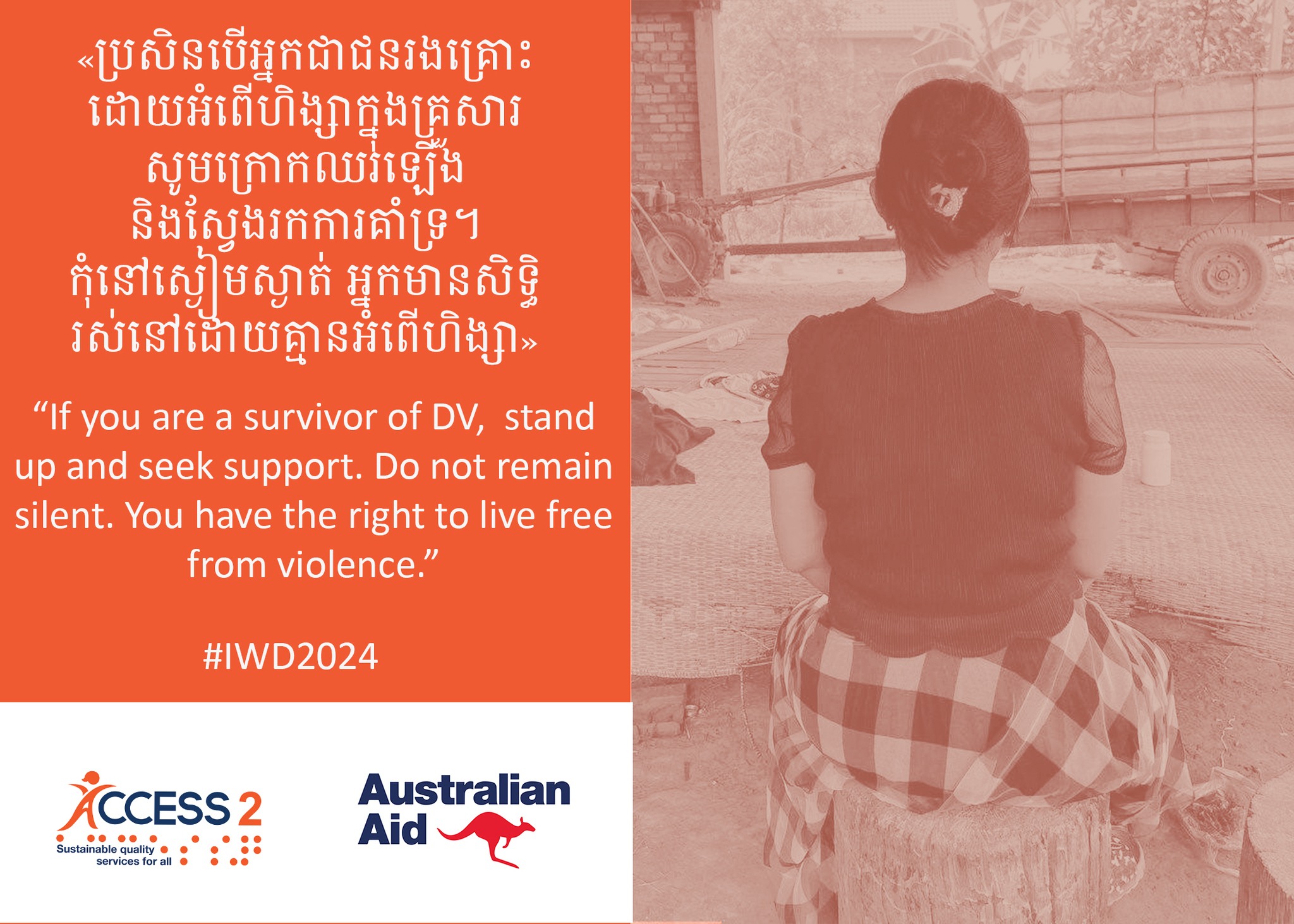 Australia, through the Australia-Cambodia Cooperation for Equitable Sustainable Services (ACCESS) program, has made a significant impact on survivors of domestic violence in Cambodia.