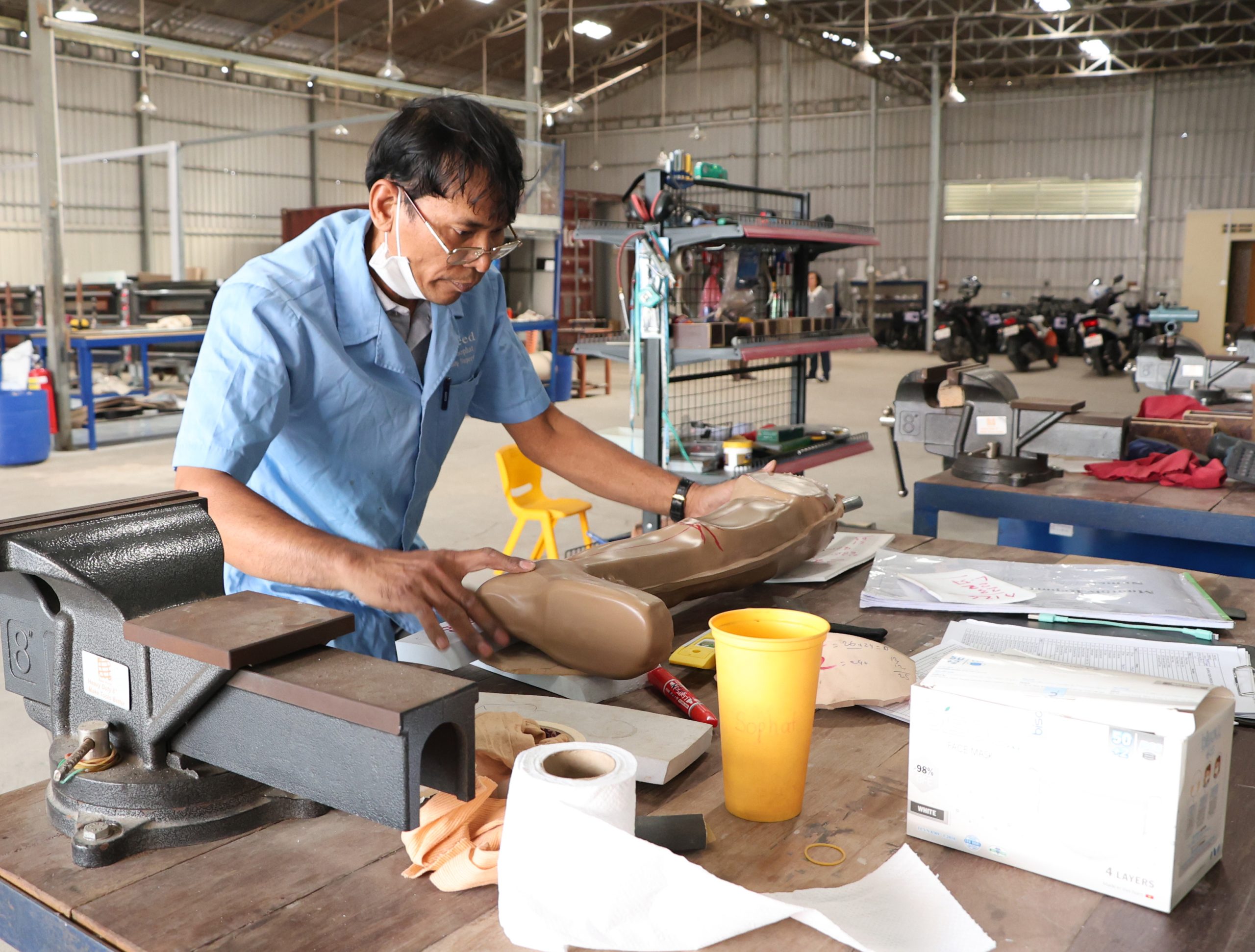 With support from ACCESS 2, Exceed Worldwide has also established a state-of-the-art Prosthetic and Orthotic Central Fabrication Unit (CFU) in Phnom Penh. The CFU supports hospital-based P&O clinics by enabling the efficient production of high-quality assistive devices. Working under the instructions of hospital-based P&O clinicians, the CFU manufactures assistive devices and carries out major repairs.