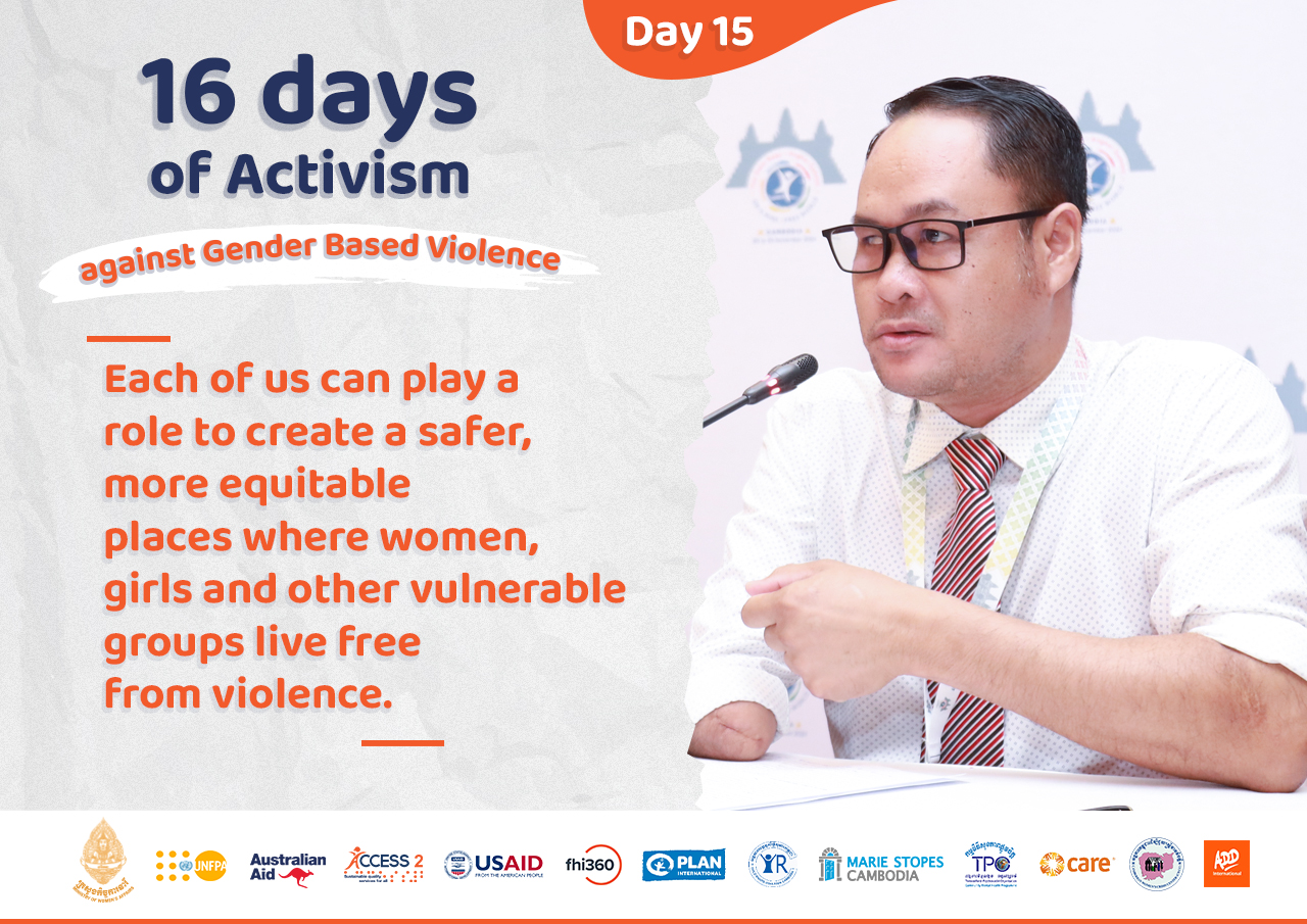 Day 15 – Celebrate the 16 days campaign against gender-based violence with our team – Mr SARUN Key , Provincial Advisor – Kampong Speu