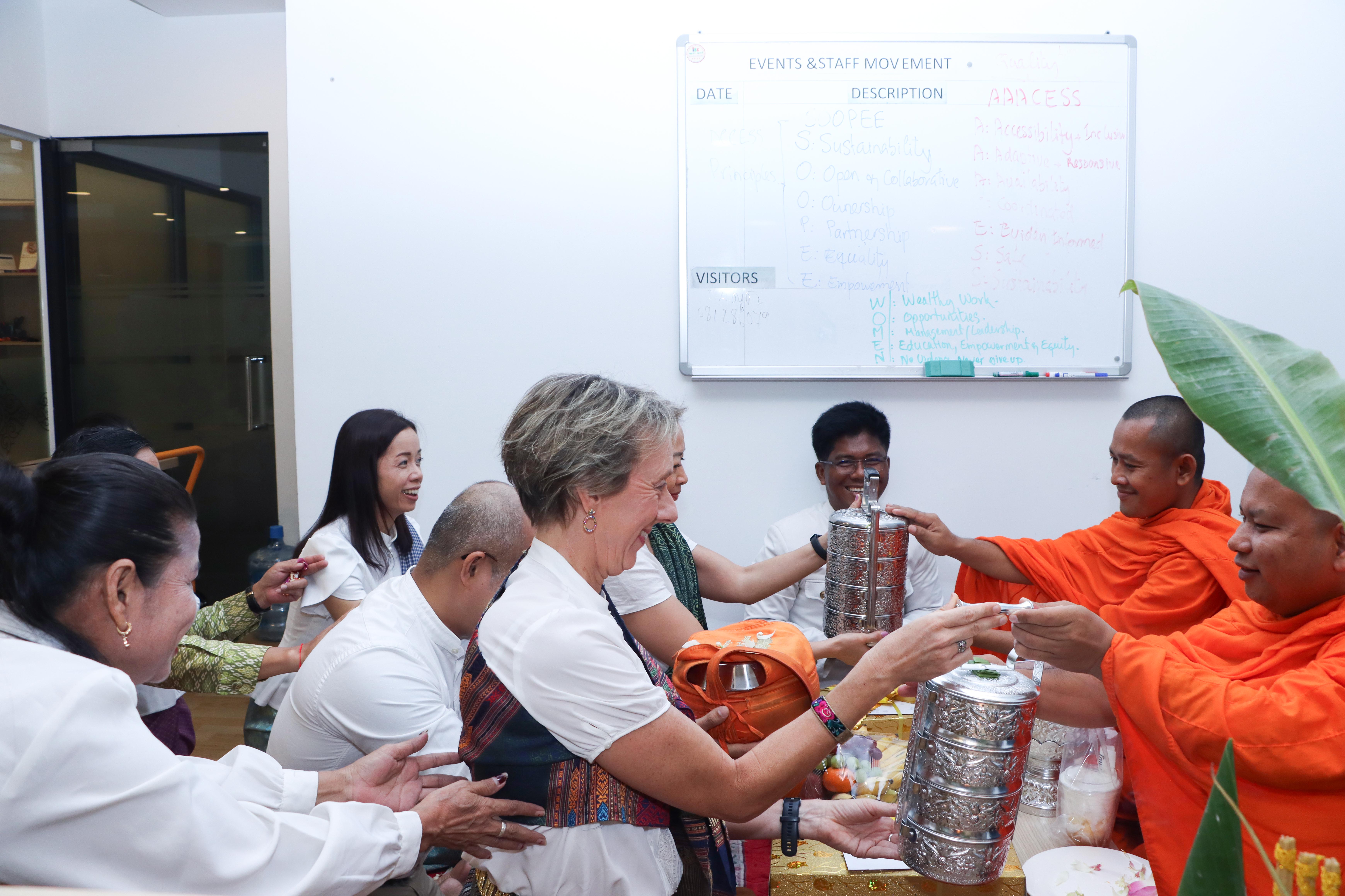 ដើម្បីស្វាគមន៍ឆ្នាំថ្មី ក្រុមការងារបានជួបជុំគ្នា និងបាននិមន្តព្រះសង្ឃមកសូត្រមន្ត ប្រោះព្រំសុំសេចក្តីសុខ សេចក្តីចម្រើនសម្រាប់ឆ្នាំថ្មីដែលនឹងឈានមកដល់។