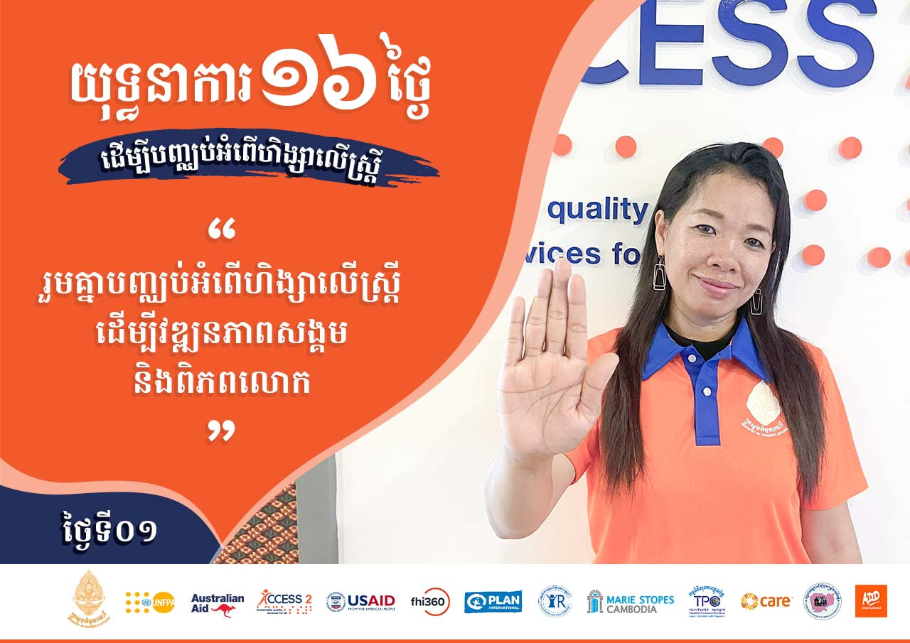 ថ្ងៃទី០១​ ប្រារព្ធយុទ្ធនាការ១៦ថ្ងៃ បញ្ឈប់អំពើហិង្សាទាក់ទងនឹងយេនឌ័រជាមួយក្រុមការងារ ACCESS 2 លោកស្រី ប៊ូ មករា ប្រធានផ្នែកអំពើហិង្សាទាក់ទងនឹងយេនឌ័រ