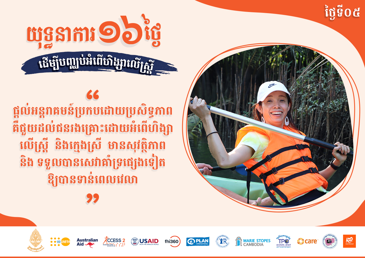 ថ្ងៃទី០៥ ប្រារព្ធយុទ្ធនាការ១៦ថ្ងៃ បញ្ឈប់អំពើហិង្សាទាក់ទងនឹងយេនឌ័រជាមួយក្រុមការងារ ACCESS 2 លោកស្រី ហ៊ាង កាណែល ប្រធានផ្នែកគ្រប់គ្រងមូលនិធិ